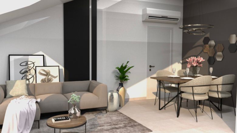 2 x double bedroom, kitchen, dining room, living room, 2 x bathroom, shower / WC, balcony-terrace, SAT , air conditioning, 2 persons +1-2 children, the suite is on the first floor. 44 m2.
